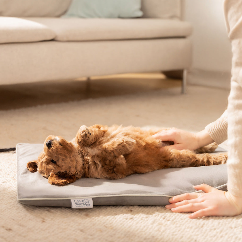 For maksimal sikkerhed har Lilli-måtten lavspændingsdrift (12V), overophedningsbeskyttelse og en strømledning med bidbeskyttelse. Varmeelementet er vandtæt og ridsefast (IPX7), hvilket gør produktet både holdbart og nemt at rengøre. Det bløde betræk kan desuden tages af og maskinvaskes ved 30°C, hvilket gør vedligeholdelsen enkel i hverdagen.