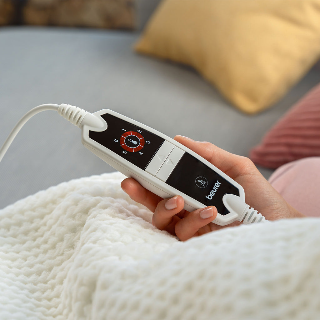 Beurer HD 82  er fremstillet i et eksklusivt materiale, der føles særligt blødt mod huden. Den lækre tekstiloverflade giver en følelse af velvære fra det øjeblik, du pakker dig ind i det. Den store størrelse på 180 x 130 cm gør tæppet ideelt til at svøbe sig ind i på sofaen eller i sengen – alene eller sammen med en anden.